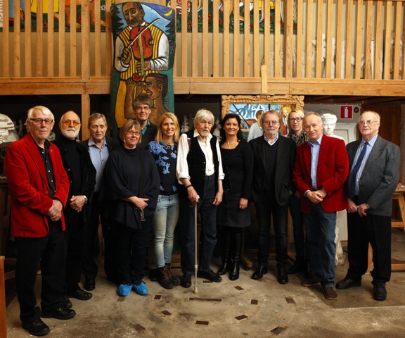 Styrelsen för Eric Sahlströms Minnesfond i februari 2016 på Bror Hjorths hus i Uppsala. Fr v: Karl-Gunnar Marklund, Ingvar Jörpeland, Gunnar Ahlbäck (hedersledamot), Sonia Sahlström, Lars Lindkvist, Erika Lindgren Liljenstolpe, Ole Hjorth (hedersledamot), Cajsa Ekstav, Benny Andersson, Anna Jönsson, Esbjörn Hogmark och Göte Herlovson (hedersledamot).